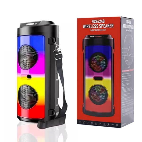 یکی از ویژگیهای جذاب اسپیکر ZQS-4248، رقص نور و چراغهای LED رنگارنگ آن است که فضایی پرانرژی و شاد ایجاد میکند. این ویژگی به خصوص برای استفاده در مهمانیها و رویدادهای شبانه بسیار مناسب است و میتواند به ایجاد فضایی پویا و سرزنده کمک کند و تجربهی شنیداری شما را تکمیل میکند.
