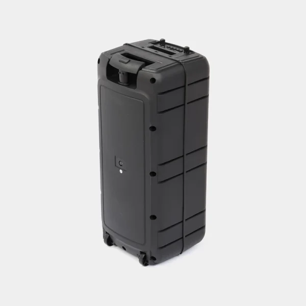 در این بخش اسپیکر بلوتوثی قابلحمل ساینج ای مدل ZQS8211 تمام توان خود را گذاشته تا نگرانی به دل خریداران راه ندهد. کلیدهایی همچون شروع و توقف آهنگ، رفتن به ترک بعدی و قبلی، انتخاب حالتهای مختلف یا MODE، مدیریت نورپردازی، کلید چرخان کنترل حجم صدا و کلید چرخان حجم صدای میکروفون در این بخش قابل مشاهده است. یک نمایشگر برای اطلاع دقیقتر از حالت محصول در اختیار کاربران قرار دارد تا تجربه بهتری از کار کردن را در ذهن بسپارند. وجود شیار کارتحافظه از نوع TF CARD، پورت USB، جک 3.5 صدا AUX و جک 6.3 میکروفون در بخش درگاههای ارتباطی قابل مشاهده است. البته مهمترین راه ارتباطی این روزها یعنی بلوتوث، بهترین و راحتترین نوع ارتباط را فراهم میسازد. یکی دیگر از ویژگیهای خوب این اسپیکر، کلید TWS یا استفاده از چند دستگاه به طور همزمان است. این گزینه خصوصاً برای کاربرانی که میخواهند از چند اسپیکر به طور همزمان یا چند منبع به طور همزمان استفاده کنند بسیار مهم است. باتری یکی از مهمترین مشخصات یک اسپیکر بلوتوثی قابلحمل است که باید به آن توجه کرد. اسپیکر بلوتوثی قابلحمل ساینج ای مدل ZQS8211 به باتری 4500 میلیآمپرساعت مجهز است که ظرفیت خوبی برای یک اسپیکر قابلحمل است اما باید در نظر گرفت که این اسپیکر با دو درایور بزرگ و قدرتمند و نورپردازی گسترده، قطعاً به توان زیادی نیاز دارد. همین موضوع باعث شده تا با صرف دو ساعت زمان برای شارژ کردن باتری، بسته به حجم صدا بین دو تا شش ساعت از اسپیکر استفاده کنید. البته خوبی این نوع اسپیکرها این است که میتوان با شارژر گوشی، پاوربانک و حتی شارژر فندکی خودرو آن را شارژ کرد پس نباید چندان نگران تمام شدن باتری این اسپیکر بود.