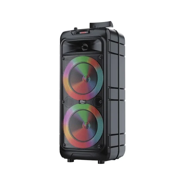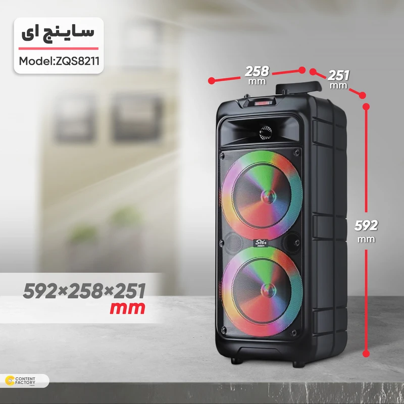 با وجود دو درایور 8 اینچی بزرگ روی اسپیکر بلوتوثی قابلحمل ساینج ای مدل ZQS8211، شاهد پاسخگویی به فرکانسهای متعدد هستیم که البته در این میان وجود تیوتر هم در نقش تولید یک صدای همهجانبه بیتاثیر نیست. همانطور که اشاره شد، در اطراف درایورها، رینگ لایت RGB خودنمایی میکند که البته یکی دیگر از جذابیتهای این موضوع، دیدن تکانهای درایور در زمان بیس زدن است. توان نامی این اسپیکر یا PMPO آن برابر با 3000 وات و توان واقعی یا RMS برابر با 50 وات است. با تمام این مشخصات، صدای خروجی مناسب ارزیابی میشود ولی با صدای یک اسپیکر حرفهای فاصله خود را حفظ می کند. از این رو ما با یک محصول همهجانبه طرف هستیم چراکه برچسب قیمتی آن نسبت به امکانات و صدای خروجی مناسب است.