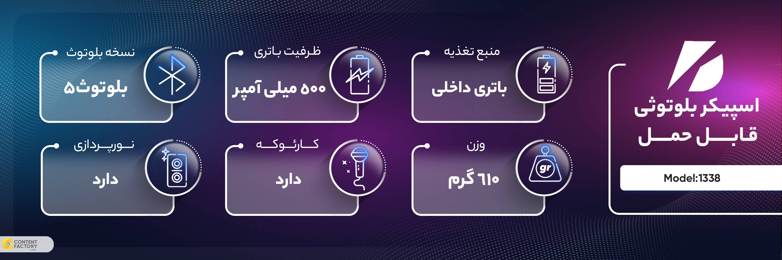 KTS-1338 اسپیکر بلوتوثی بیسیم است که با کیفیت صدای چشمگیر، اتصال بیدرنگ و طراحی مدرن عرضه شده است. این اسپیکر کوچک و قابل حمل است که برای علاقمندان به گوش دادن موسیقی در حال حرکت جذاب شده است. این اسپیکر به منظور ارائه کیفیت صدای گیرا در موسیقی مورد علاقه شما طراحی شده است. با فناوری صوتی پیشرفته، این اسپیکر، صدای واضح و باس عمیقی را تولید میکند و تجربه شنیداری جذابی را تضمین میکند.