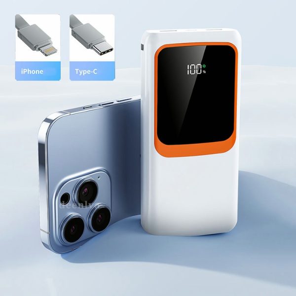 پشتیبانی از شارژ سریع، شارژ شدن توسط پورت pd, نمایشگر led، دارای 2 کابل سرخود تایپ سی و آیفون